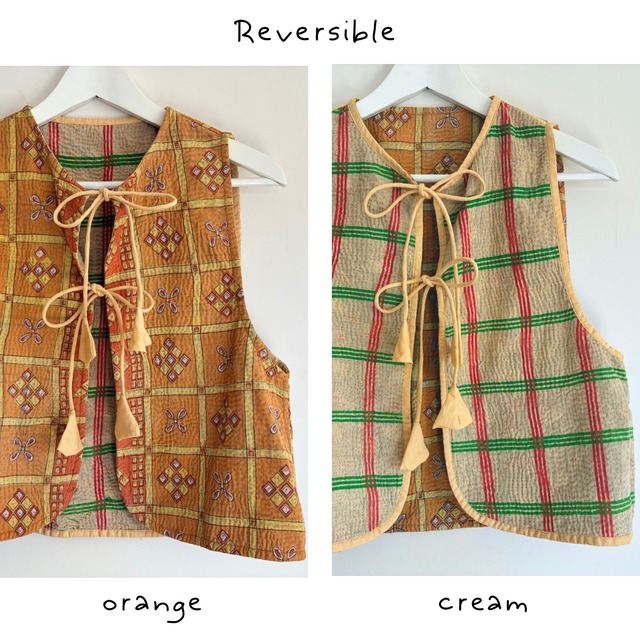 ラリーキルトリボンベスト✴︎オレンジ×クリーム