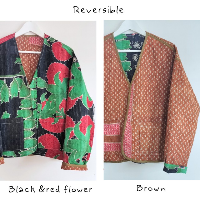 ラリーキルトジャケット✾ブラック&レッドフラワー×ブラウン