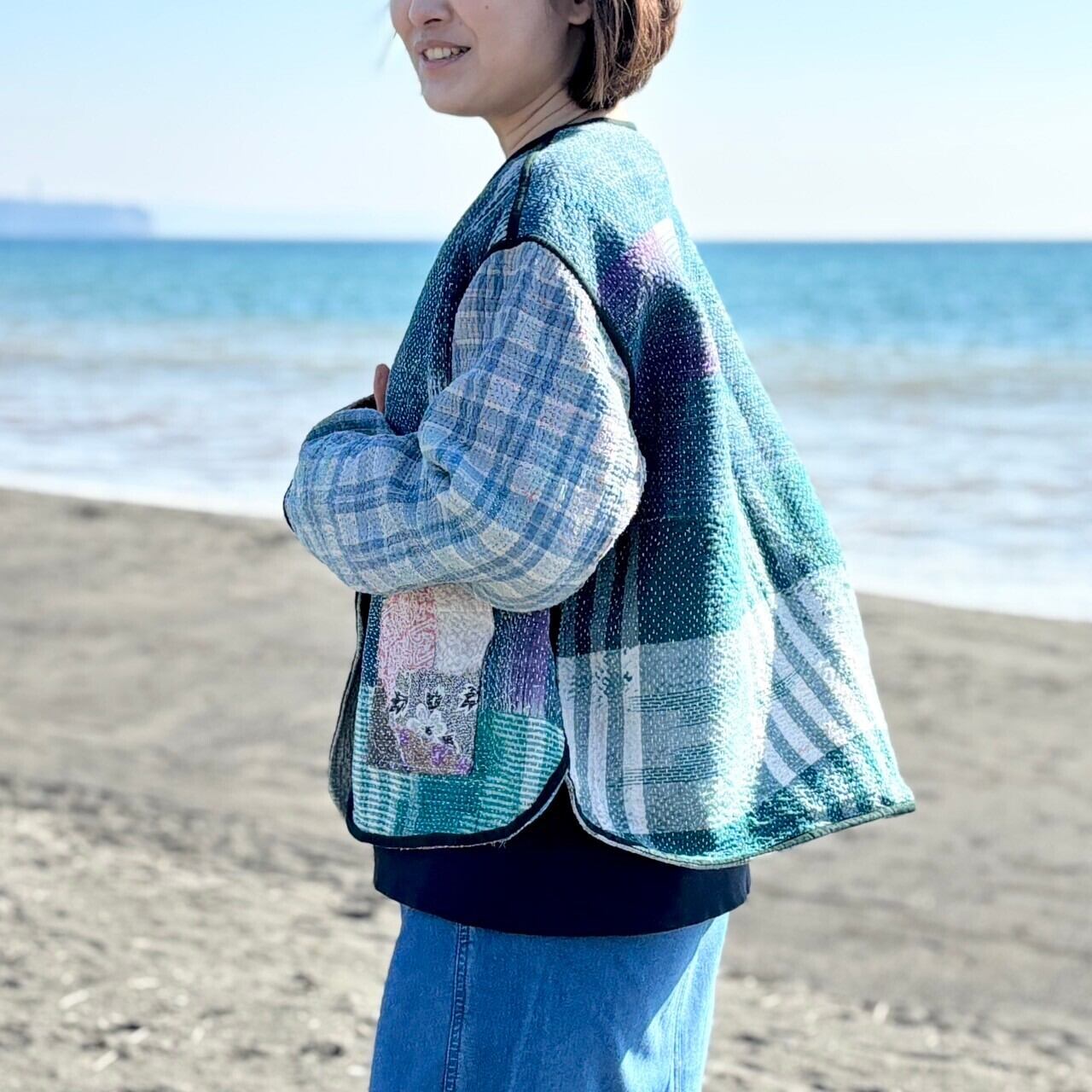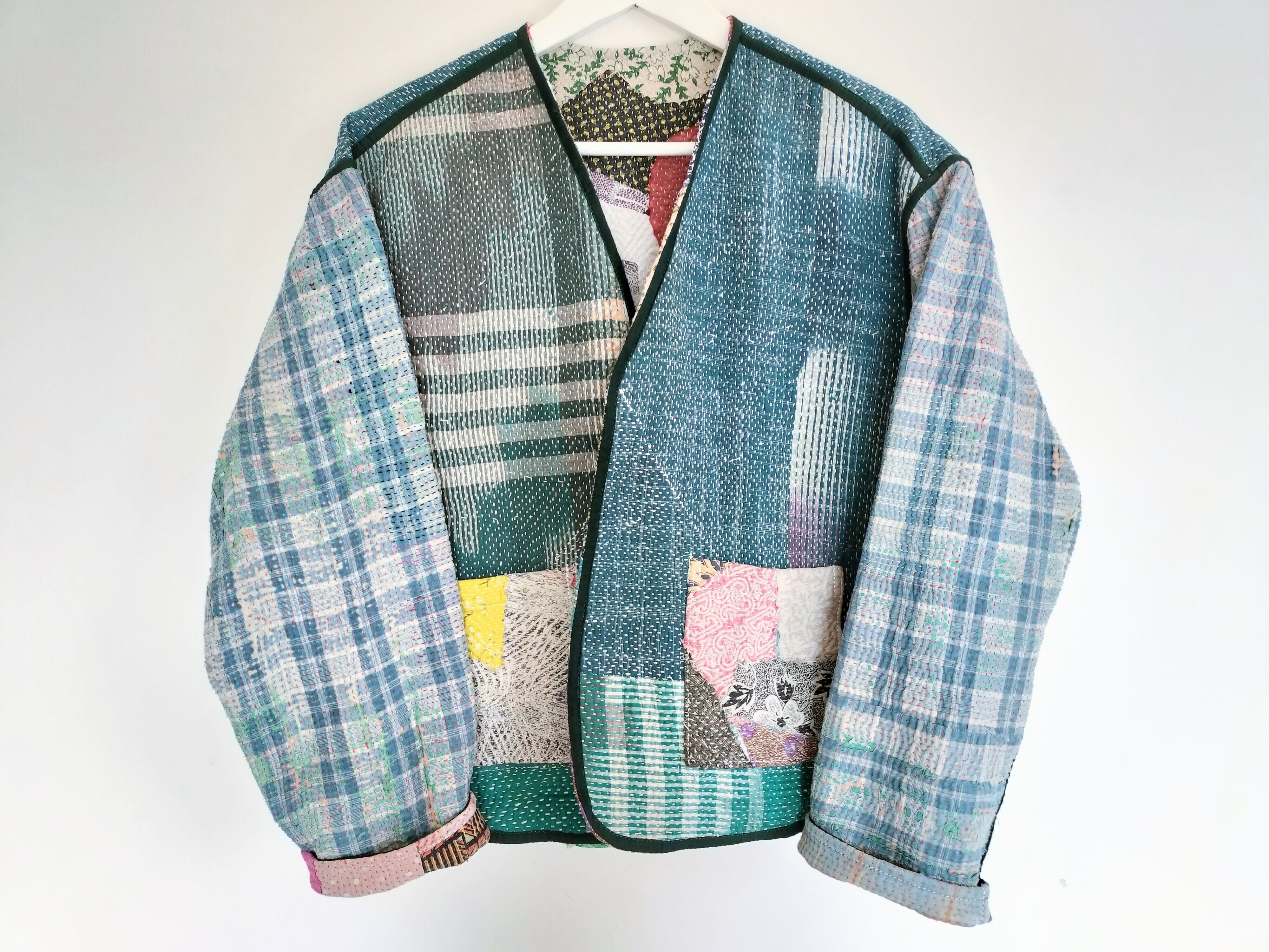ラリーキルトジャケット✾ランダムパッチワーク×ダークグリーン