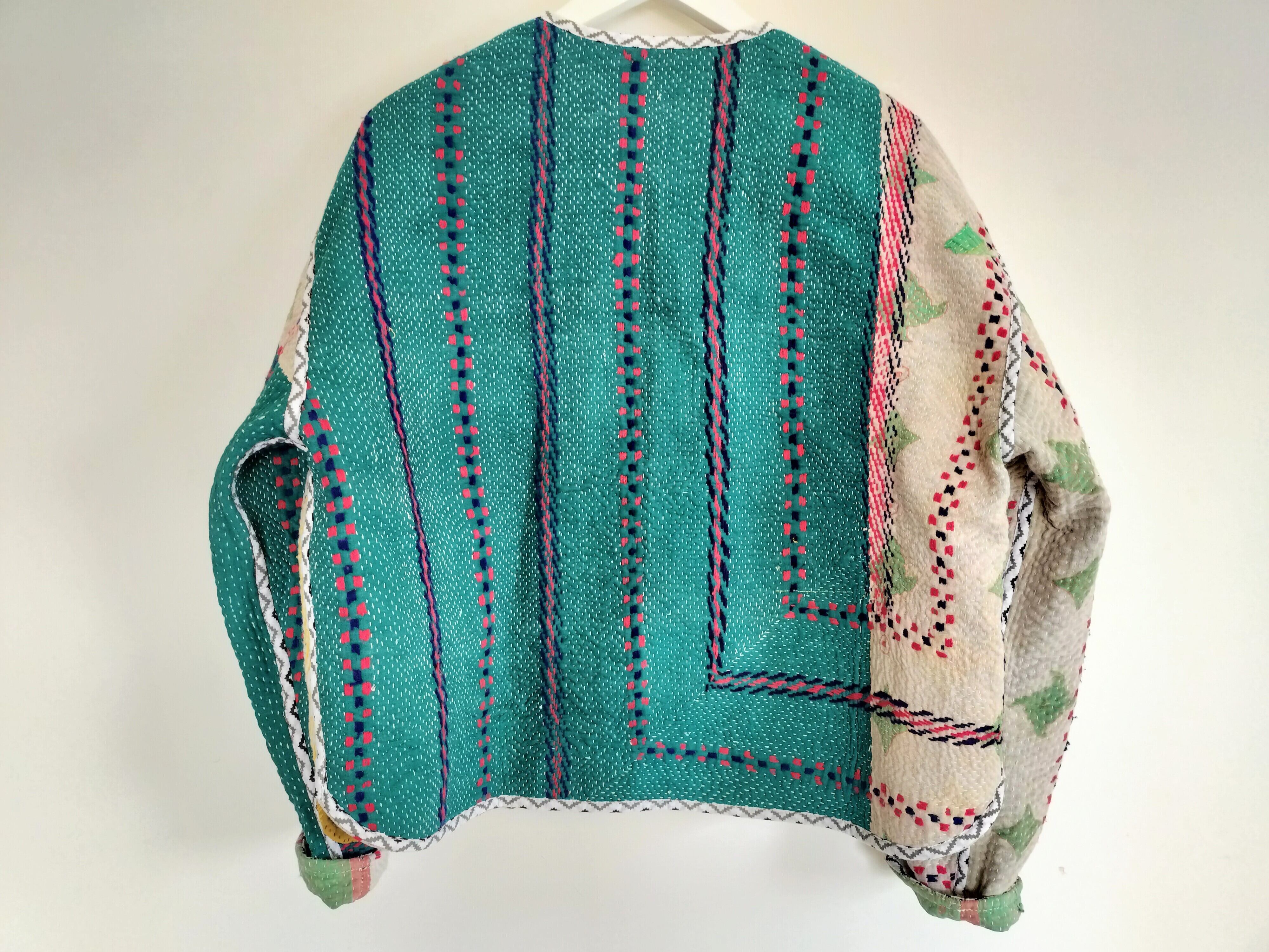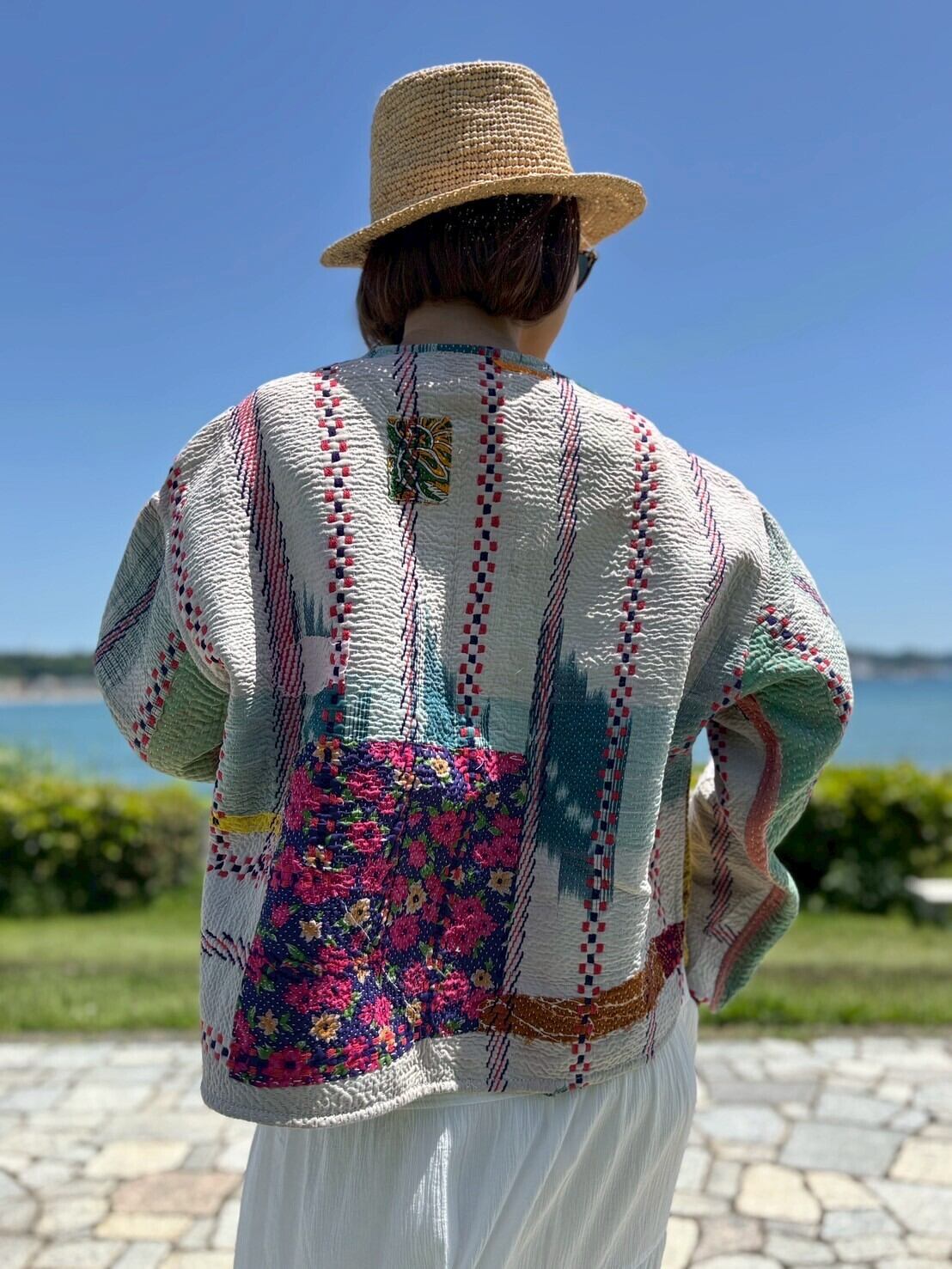ラリーキルトジャケット✾フラワーバック×グリーンホワイト
