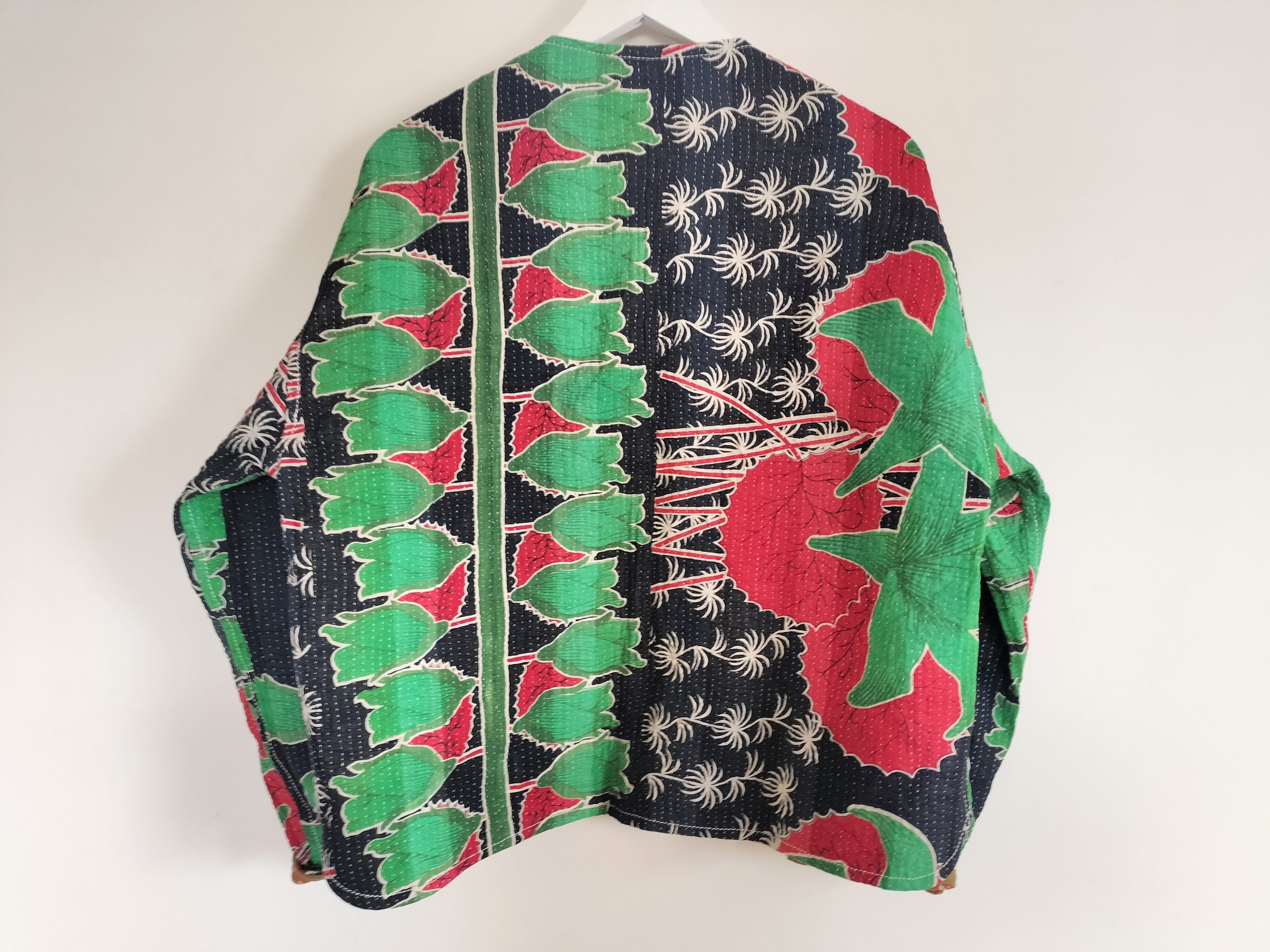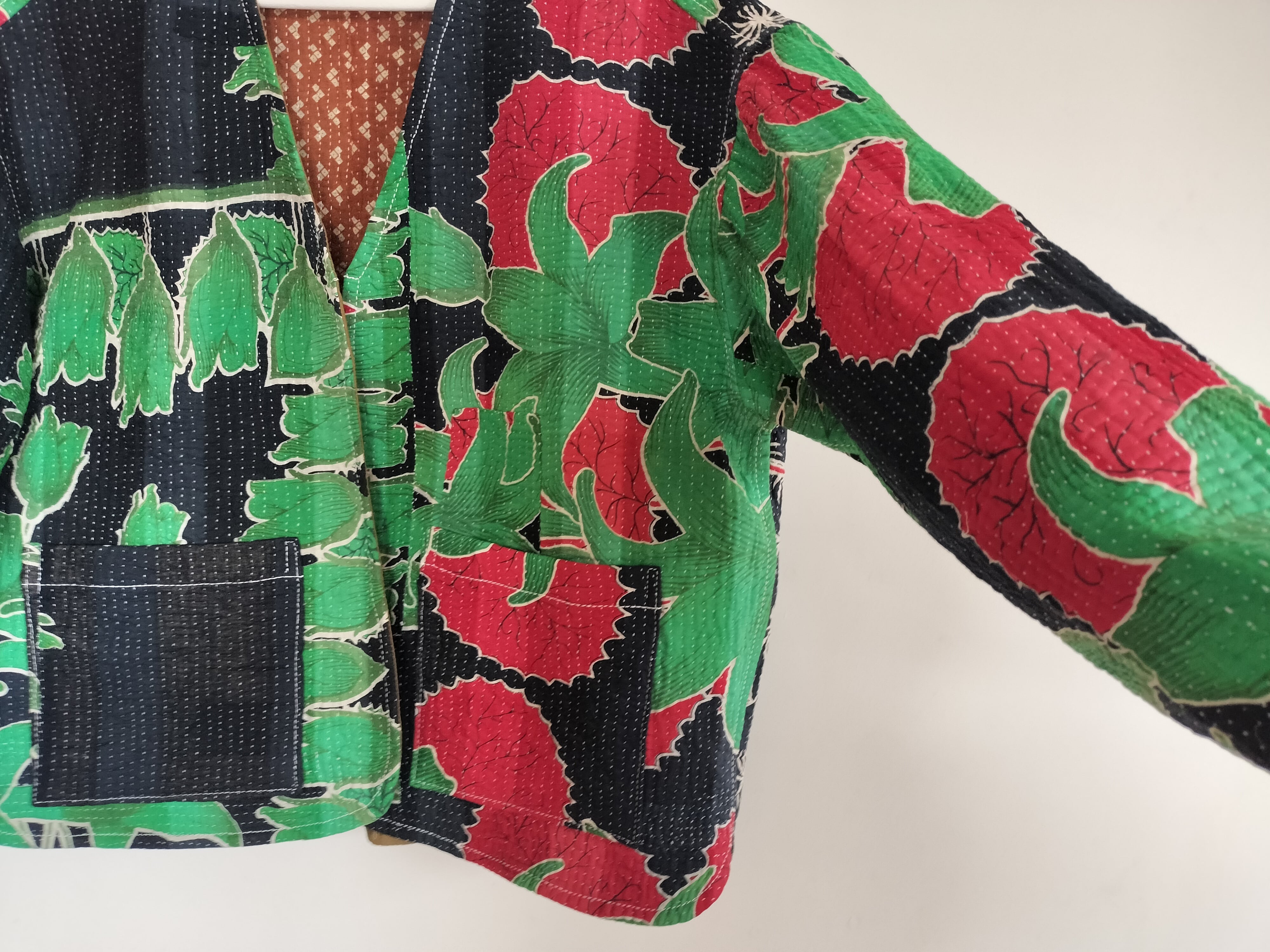 ラリーキルトジャケット✾ブラック&レッドフラワー×ブラウン
