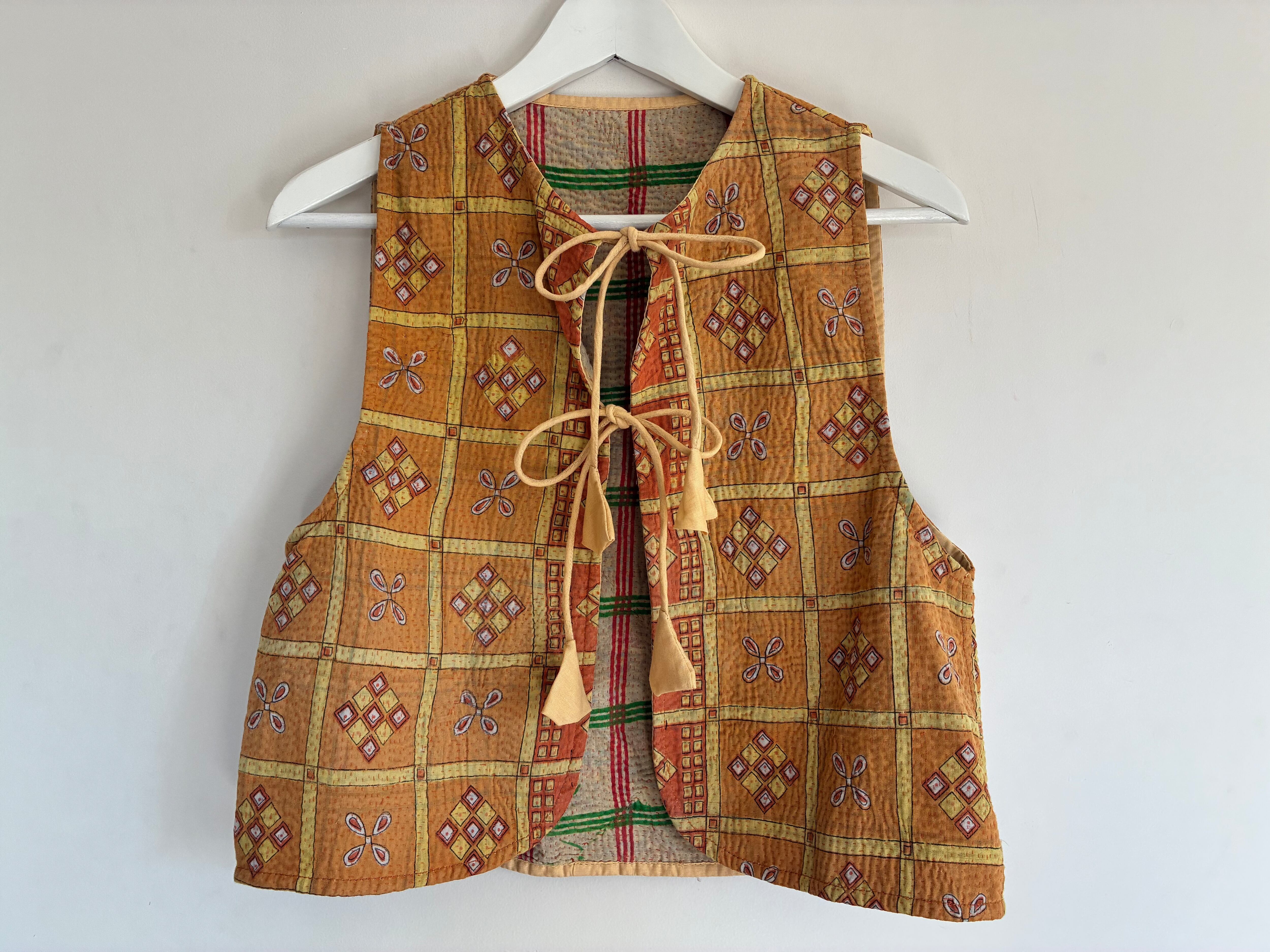 ラリーキルトリボンベスト✴︎オレンジ×クリーム
