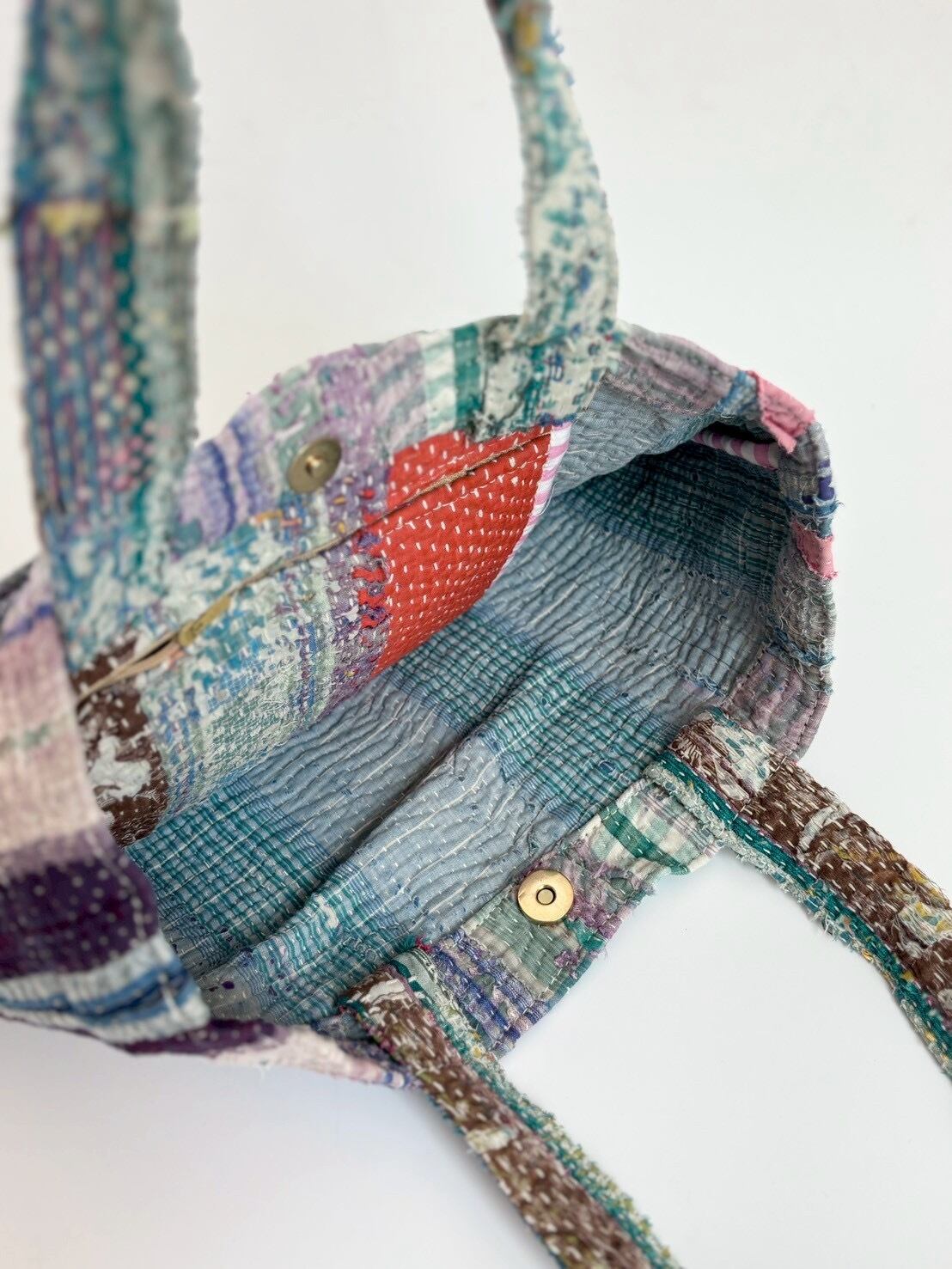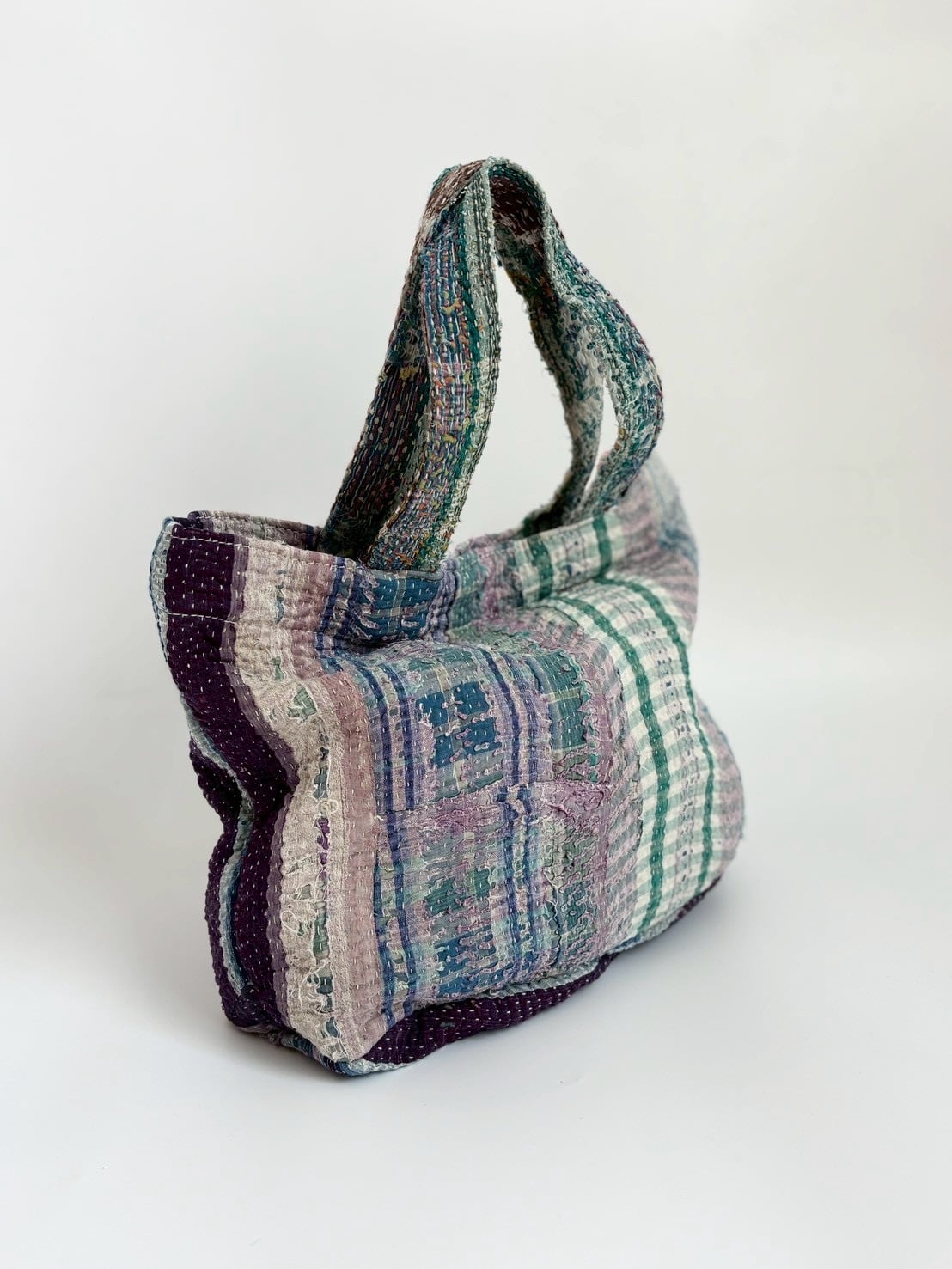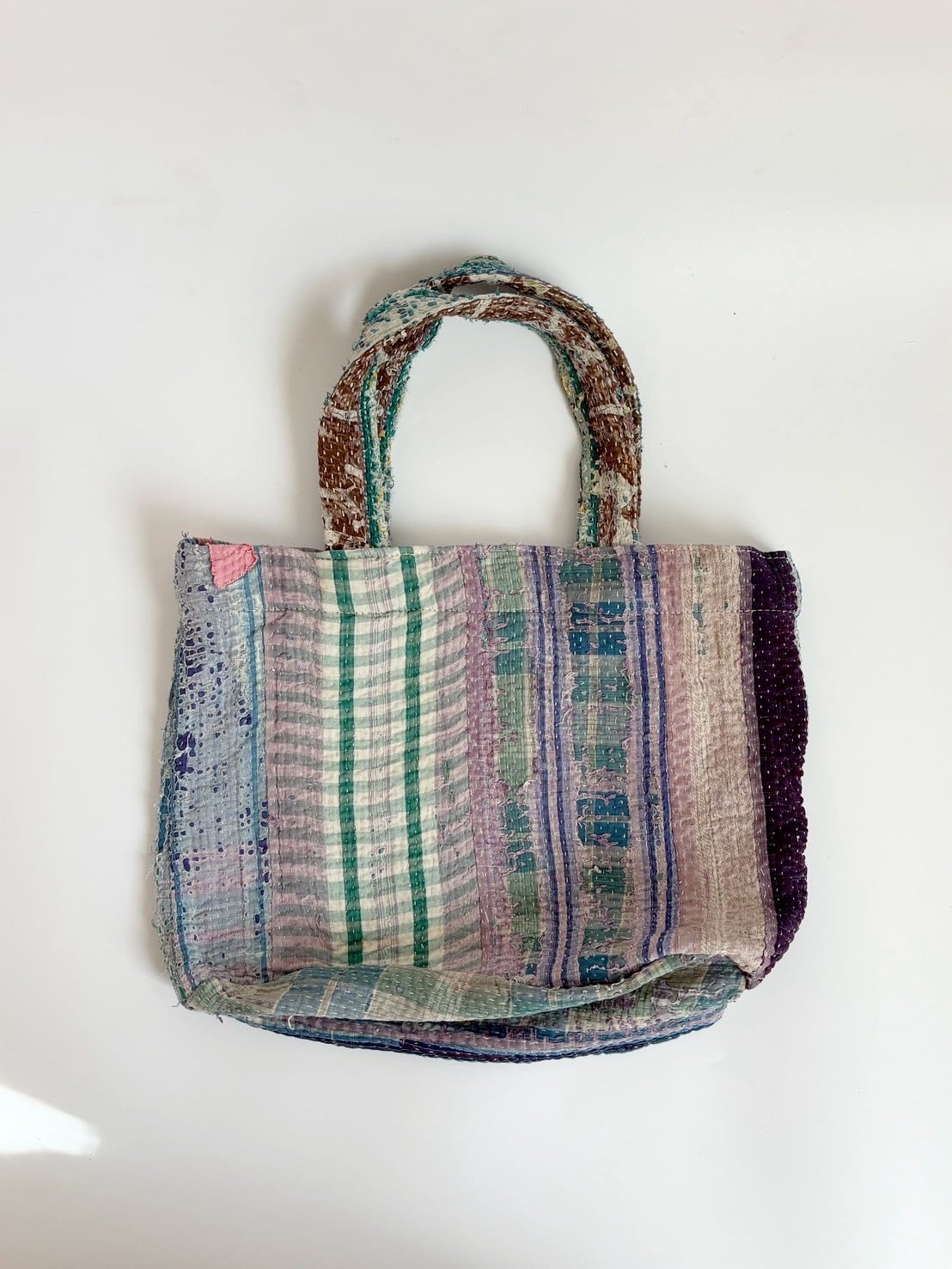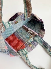 ヴィンテージラリーキルトのミニトートバッグ。