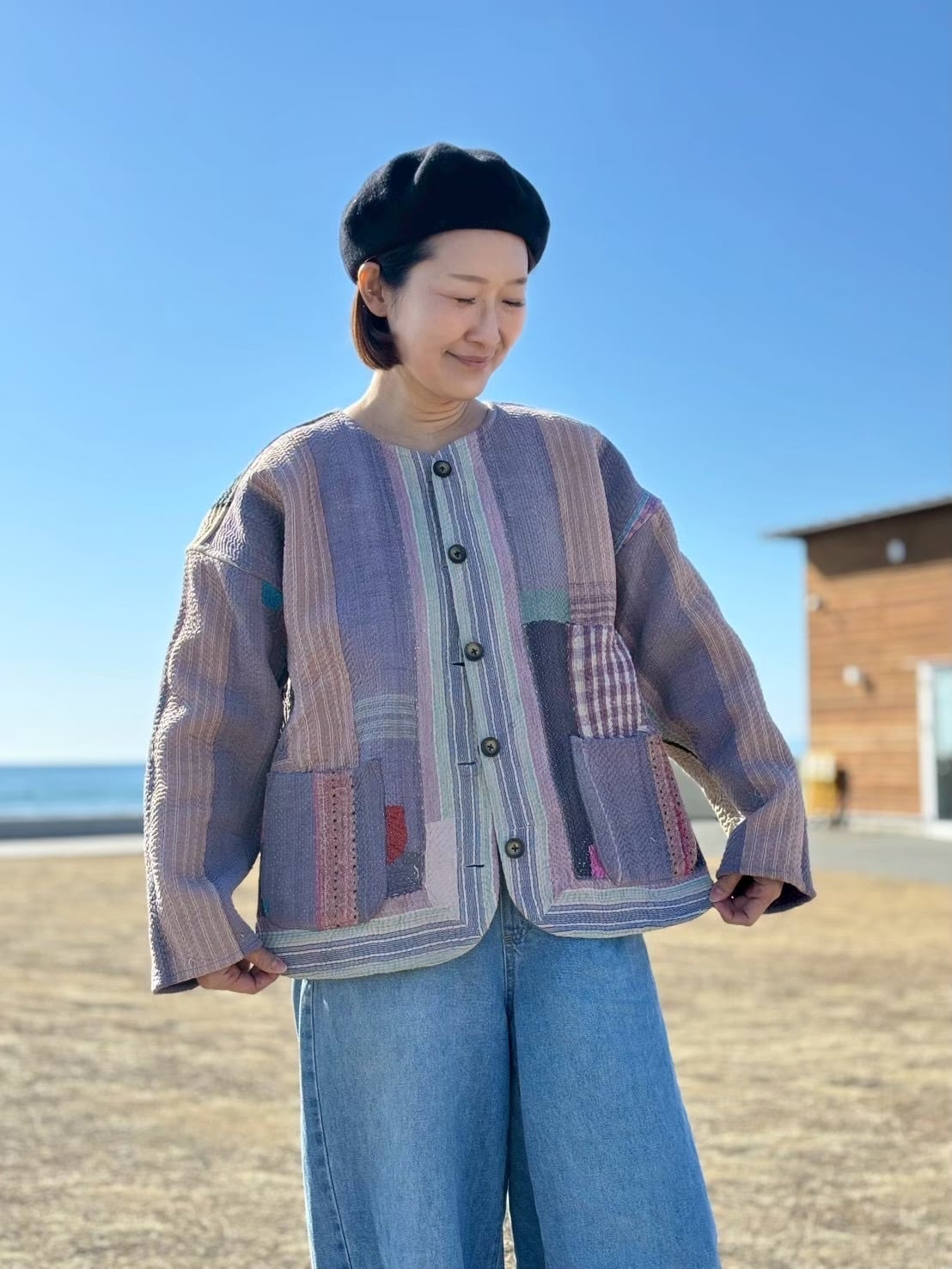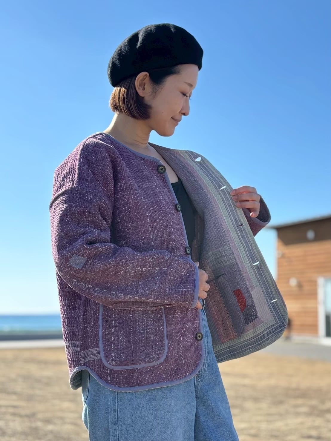 ラリーキルトボタンジャケット✴︎パープルパッチワーク×ヴィンテージパープル