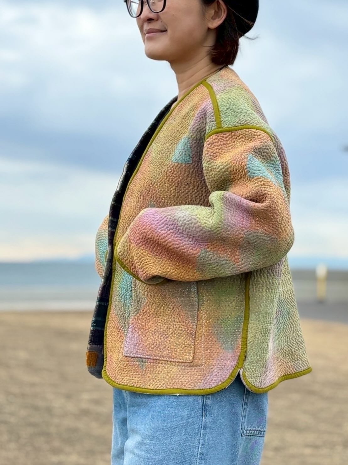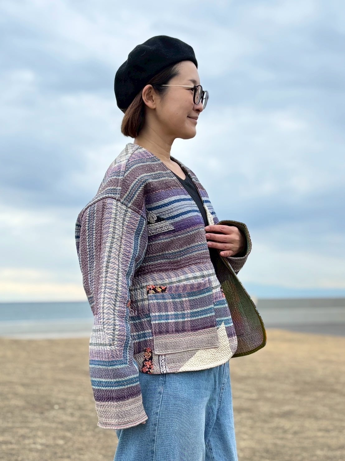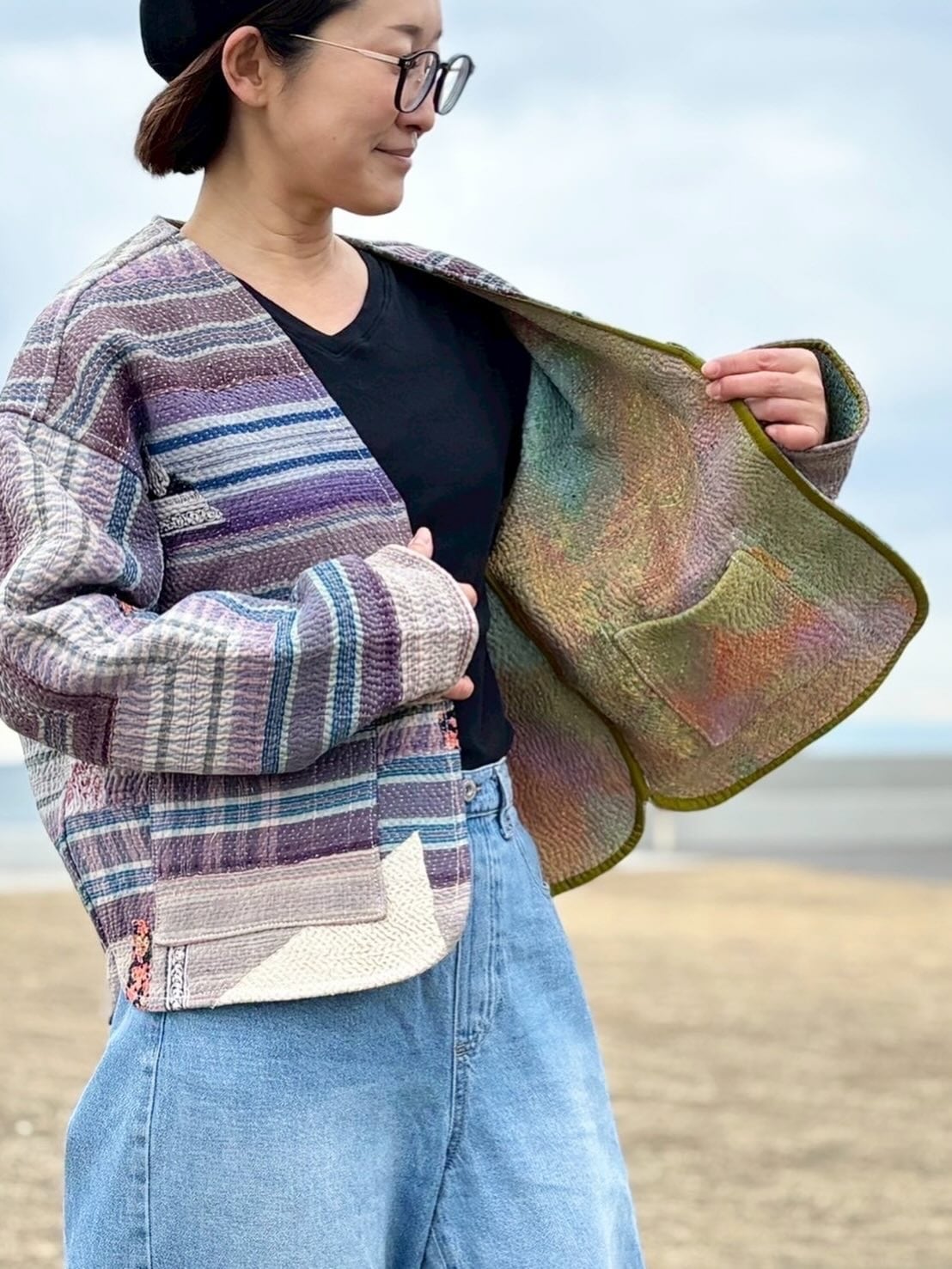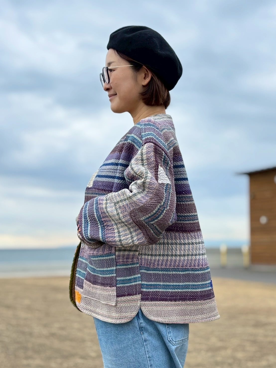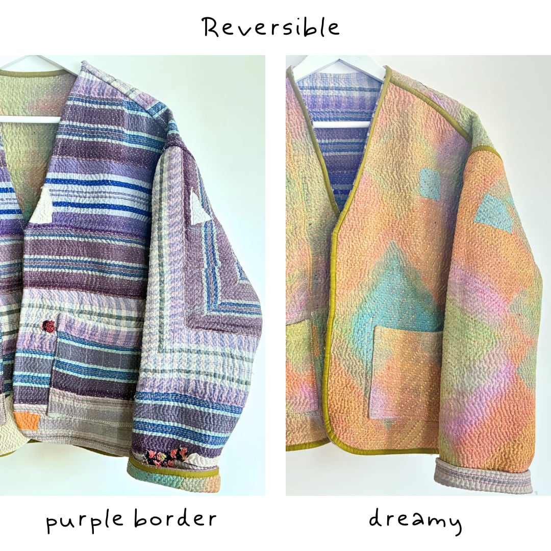 ラリーキルトジャケット✴︎パープルボーダー×ドリーミー