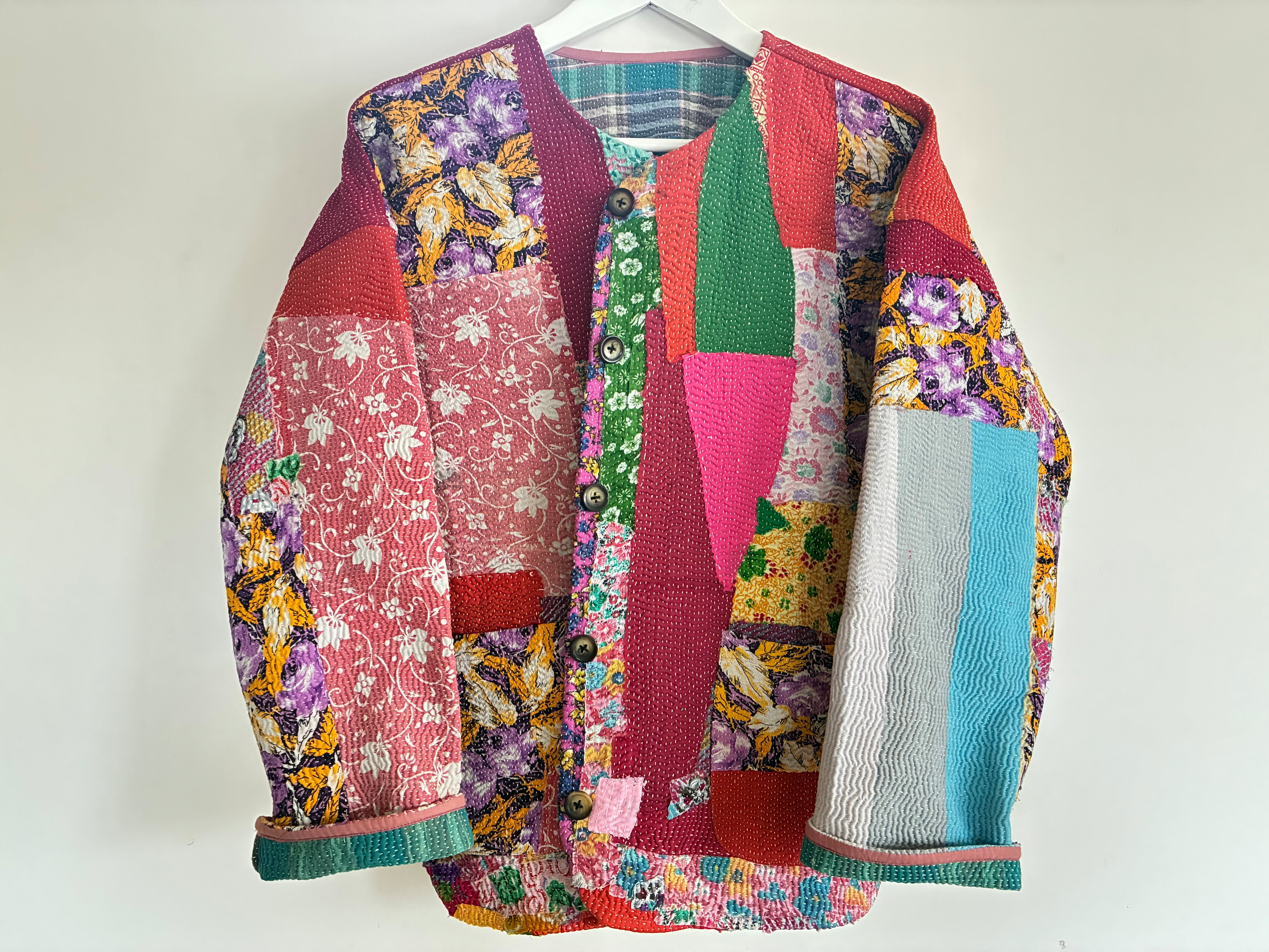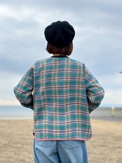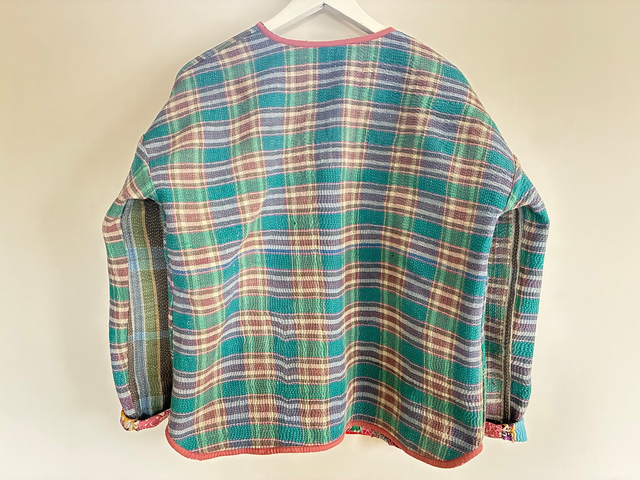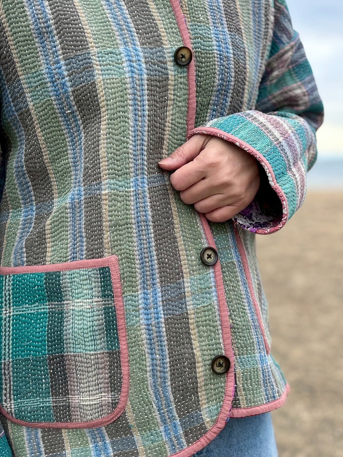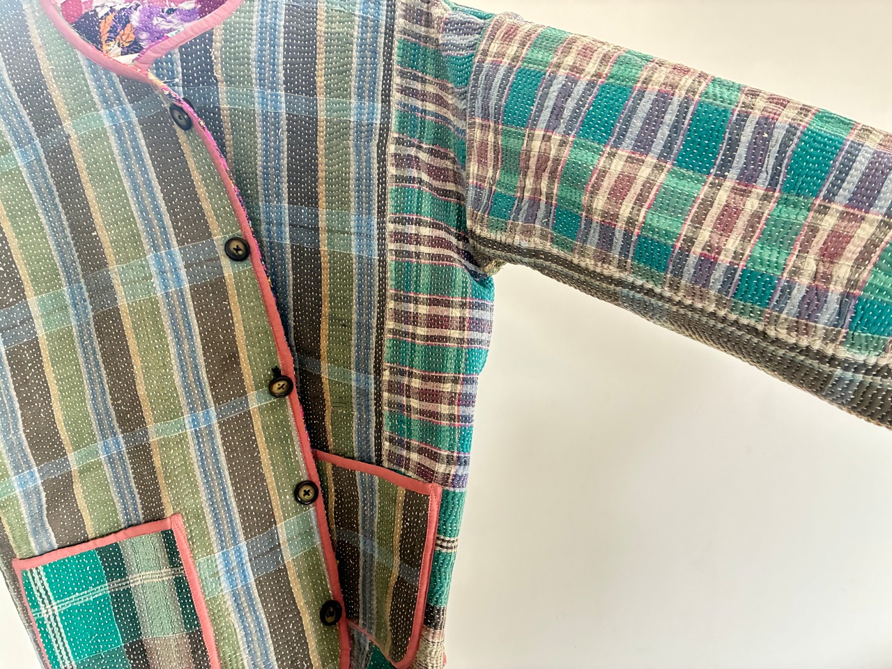 ラリーキルトボタンジャケット✴︎レッドパッチワーク×ブルーチェック