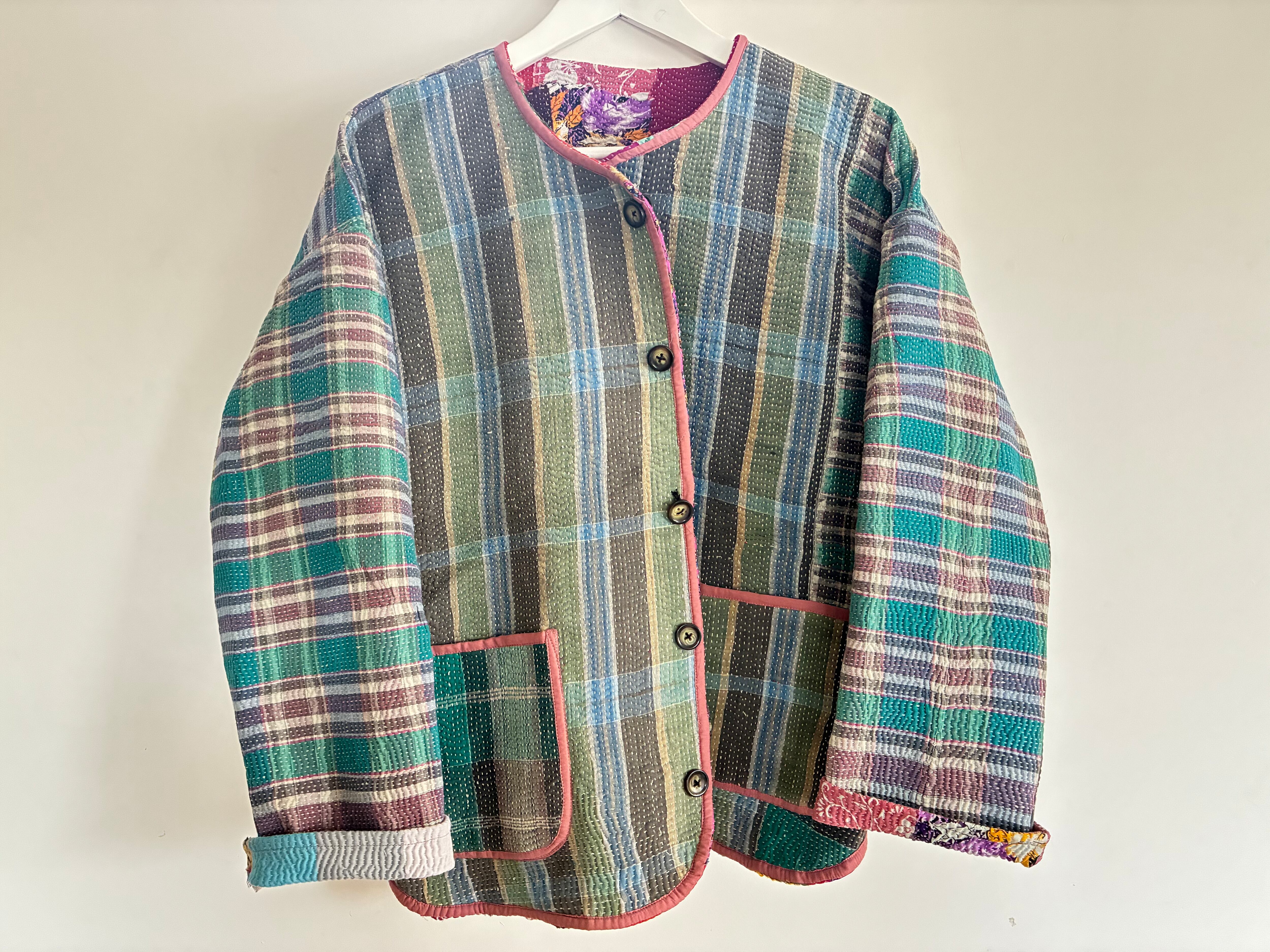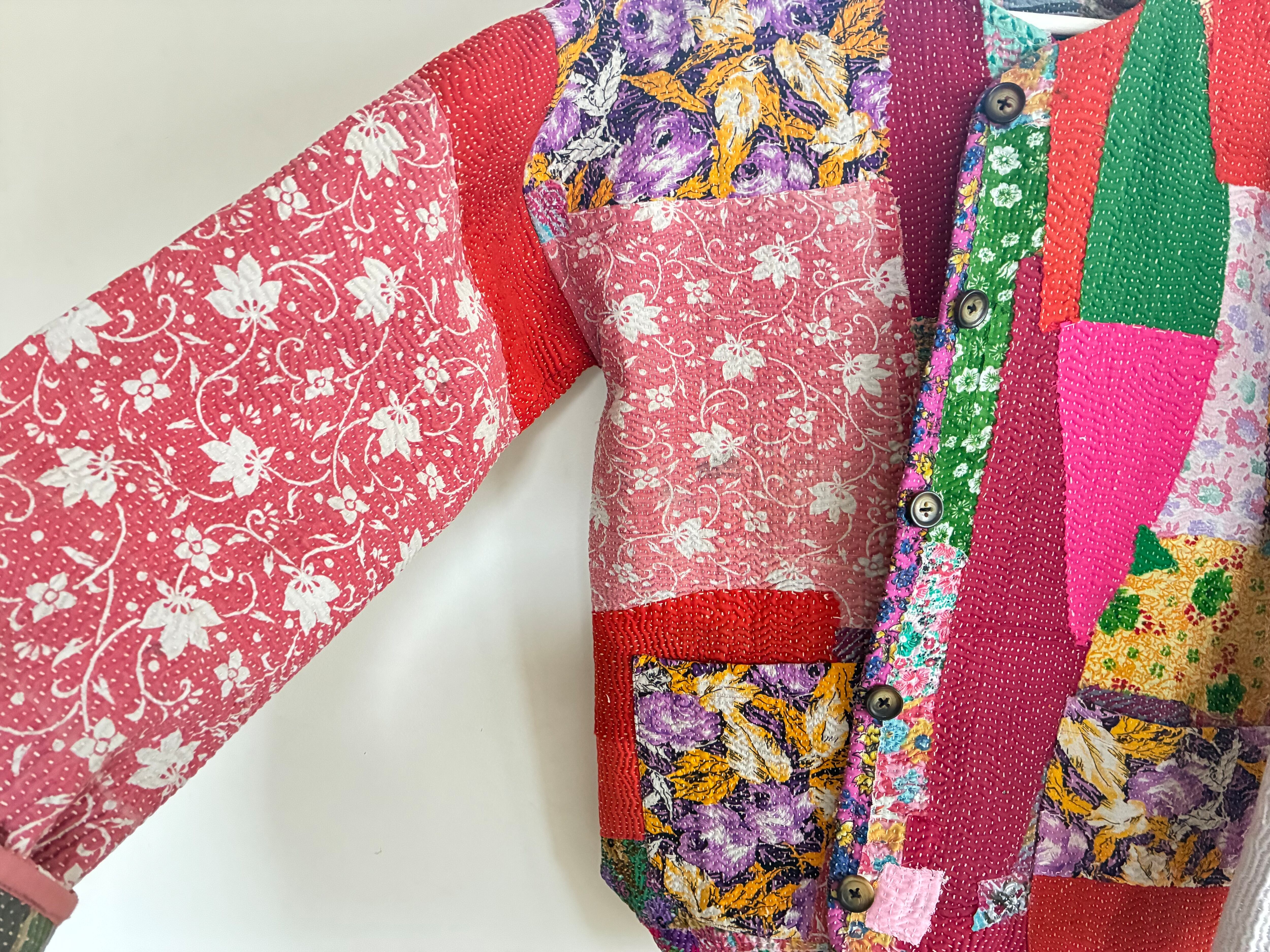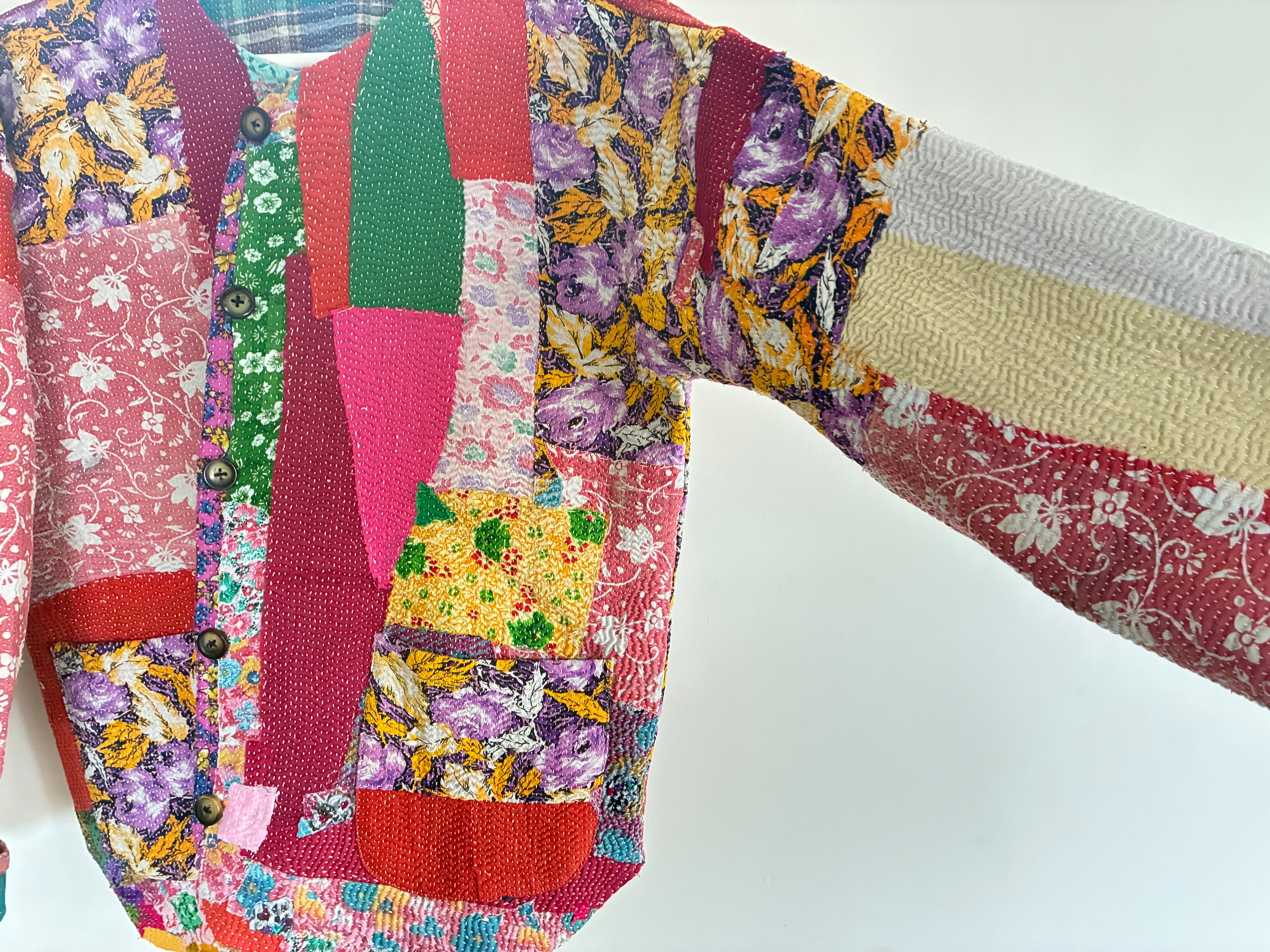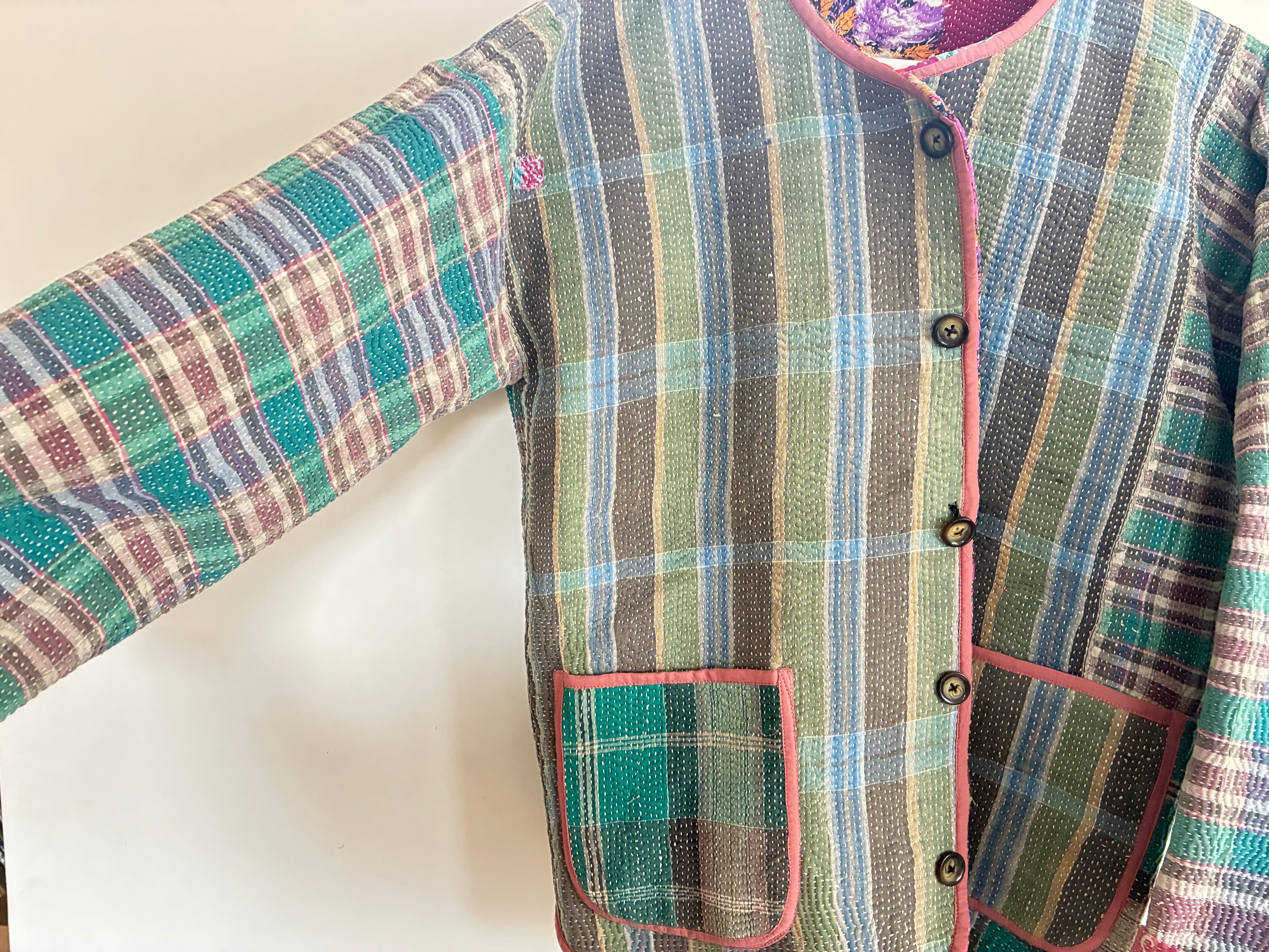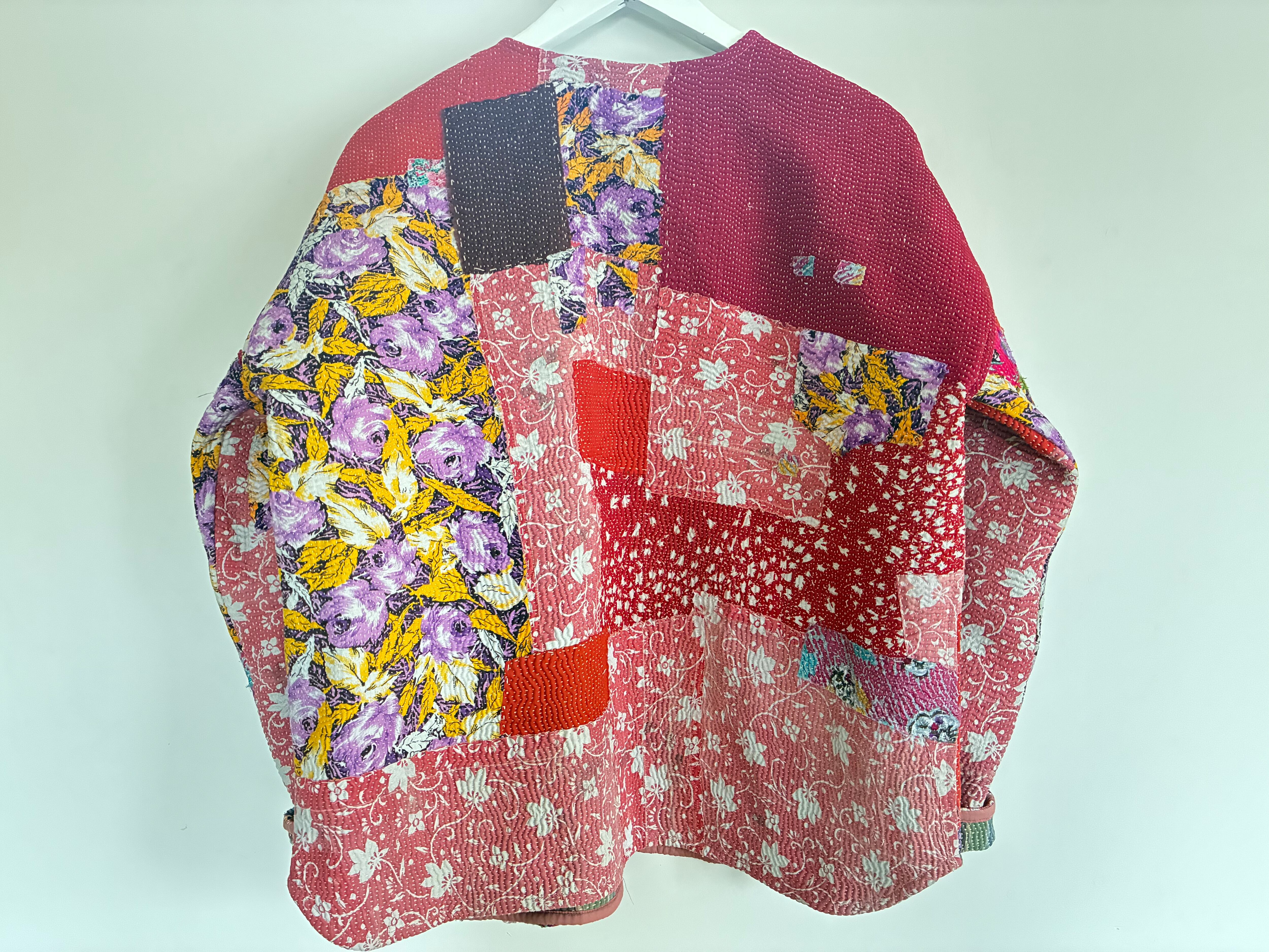 ラリーキルトボタンジャケット✴︎レッドパッチワーク×ブルーチェック