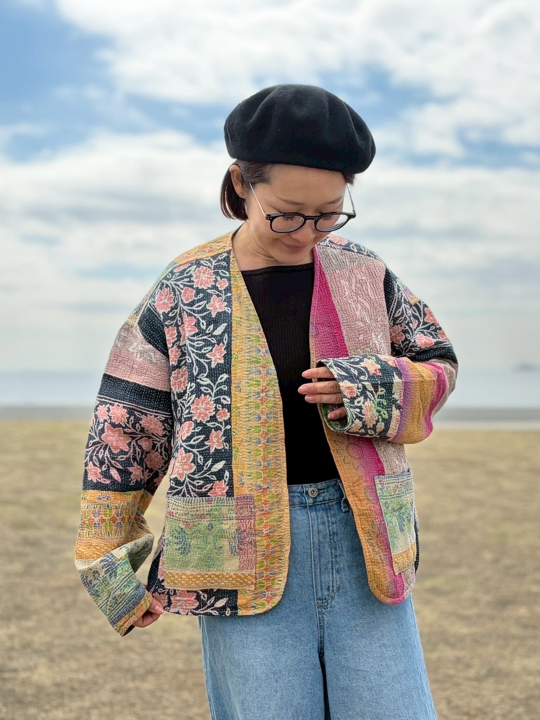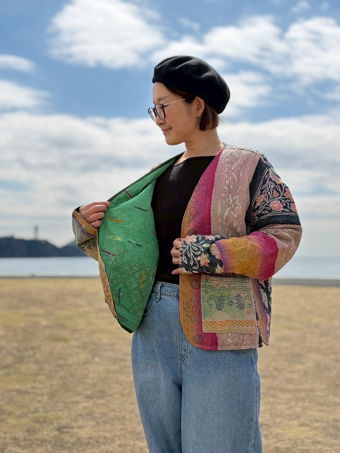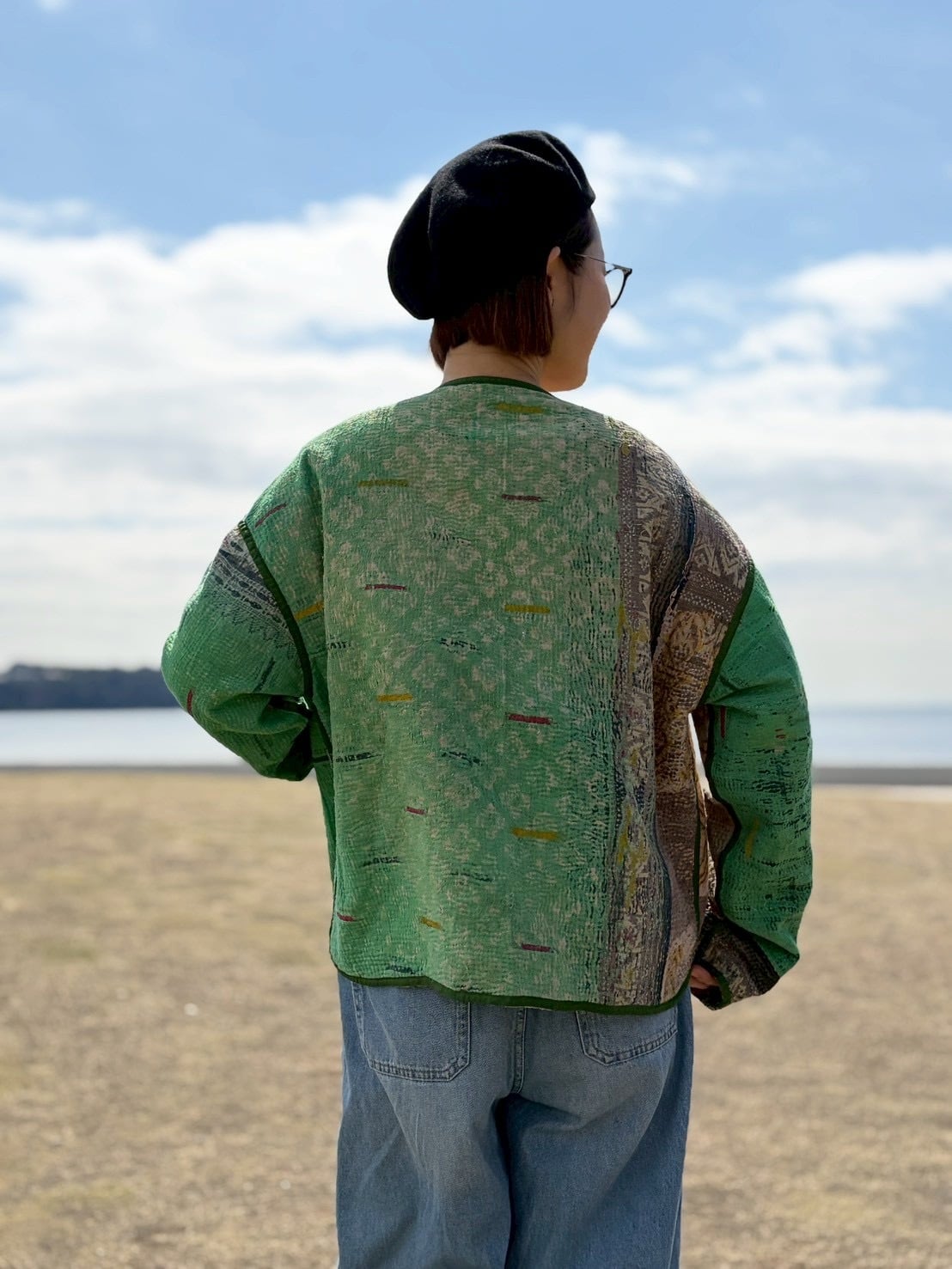 ラリーキルトジャケット✴︎カラフルパッチワーク×グリーングレージュ