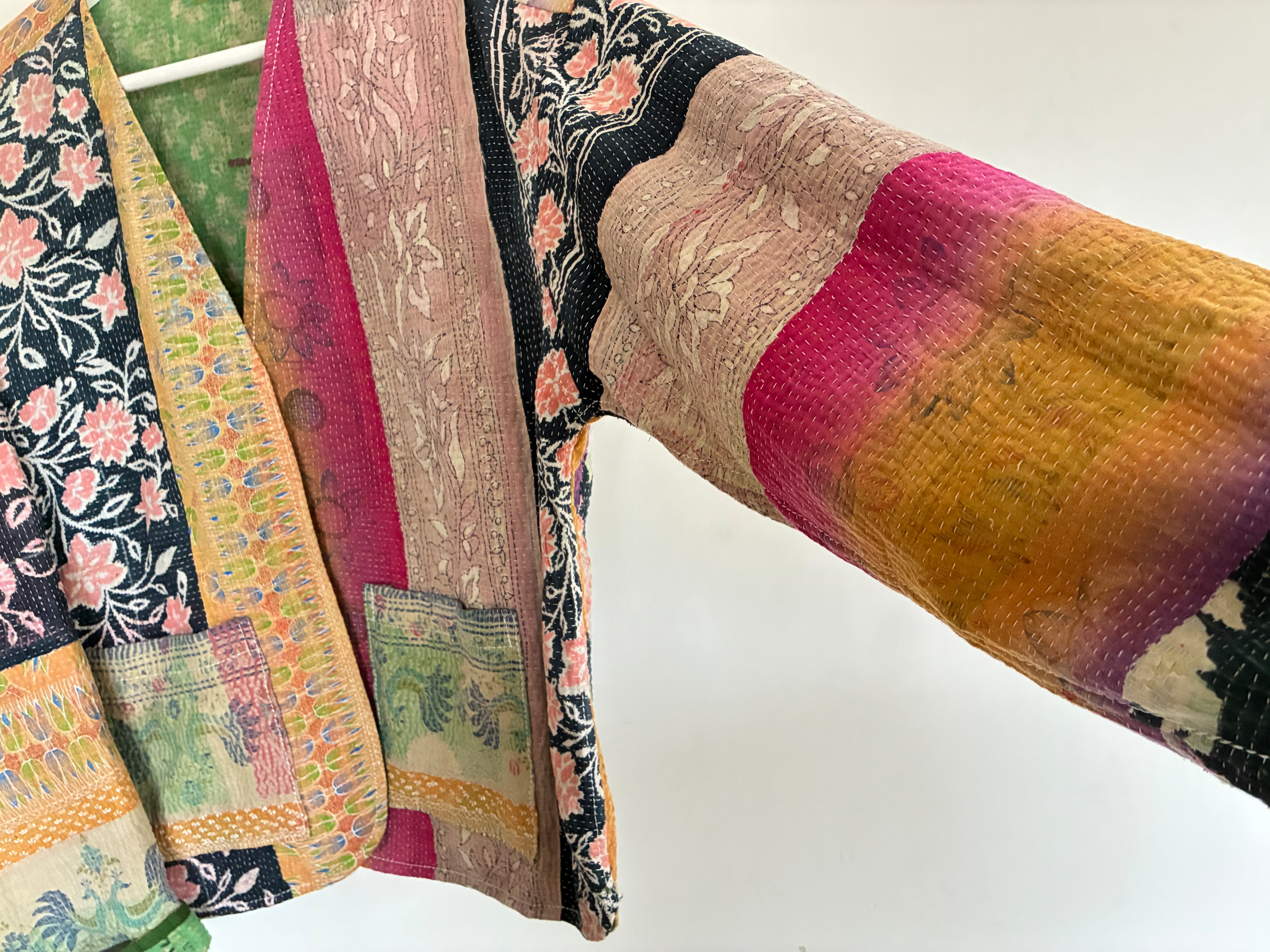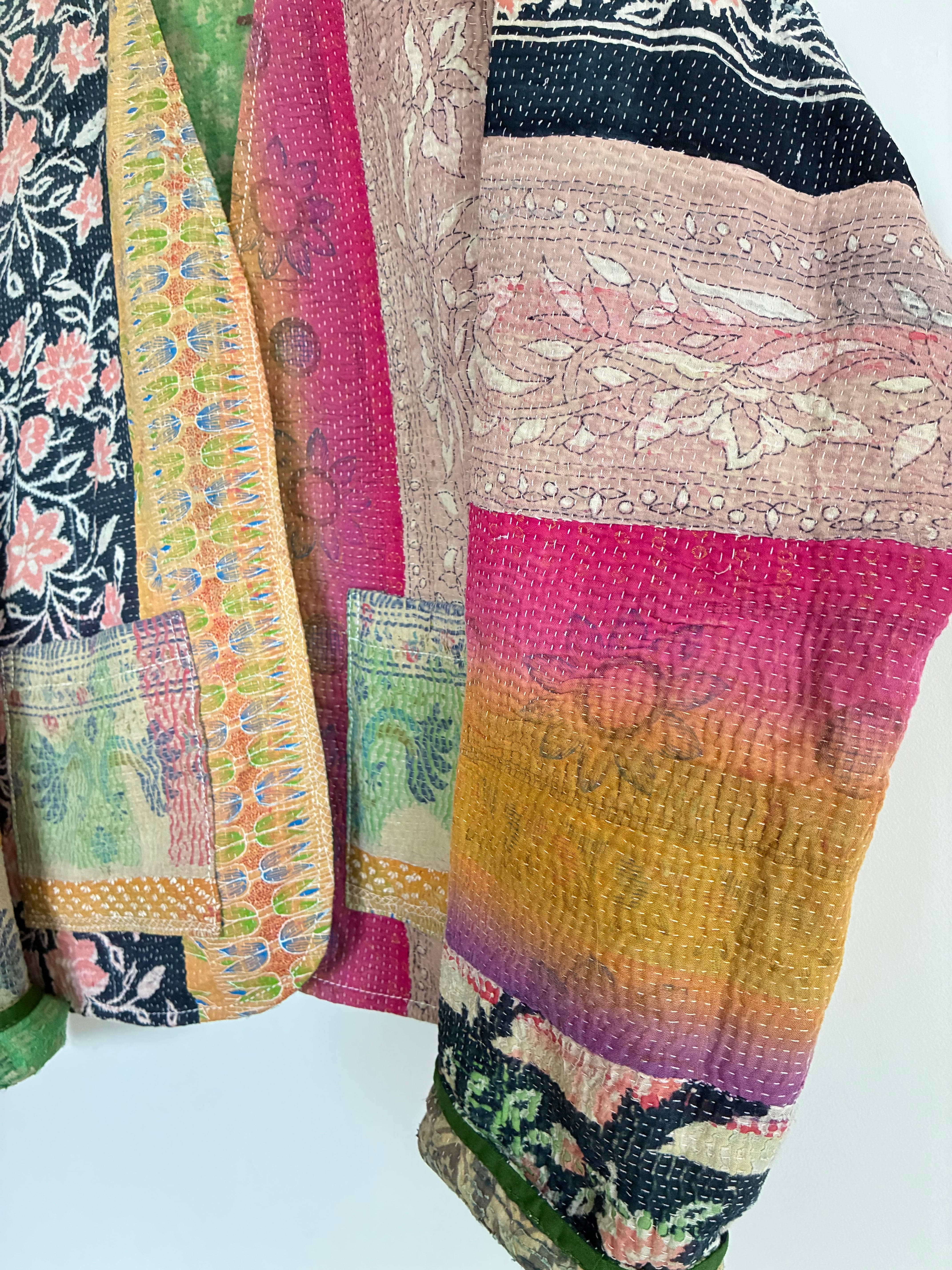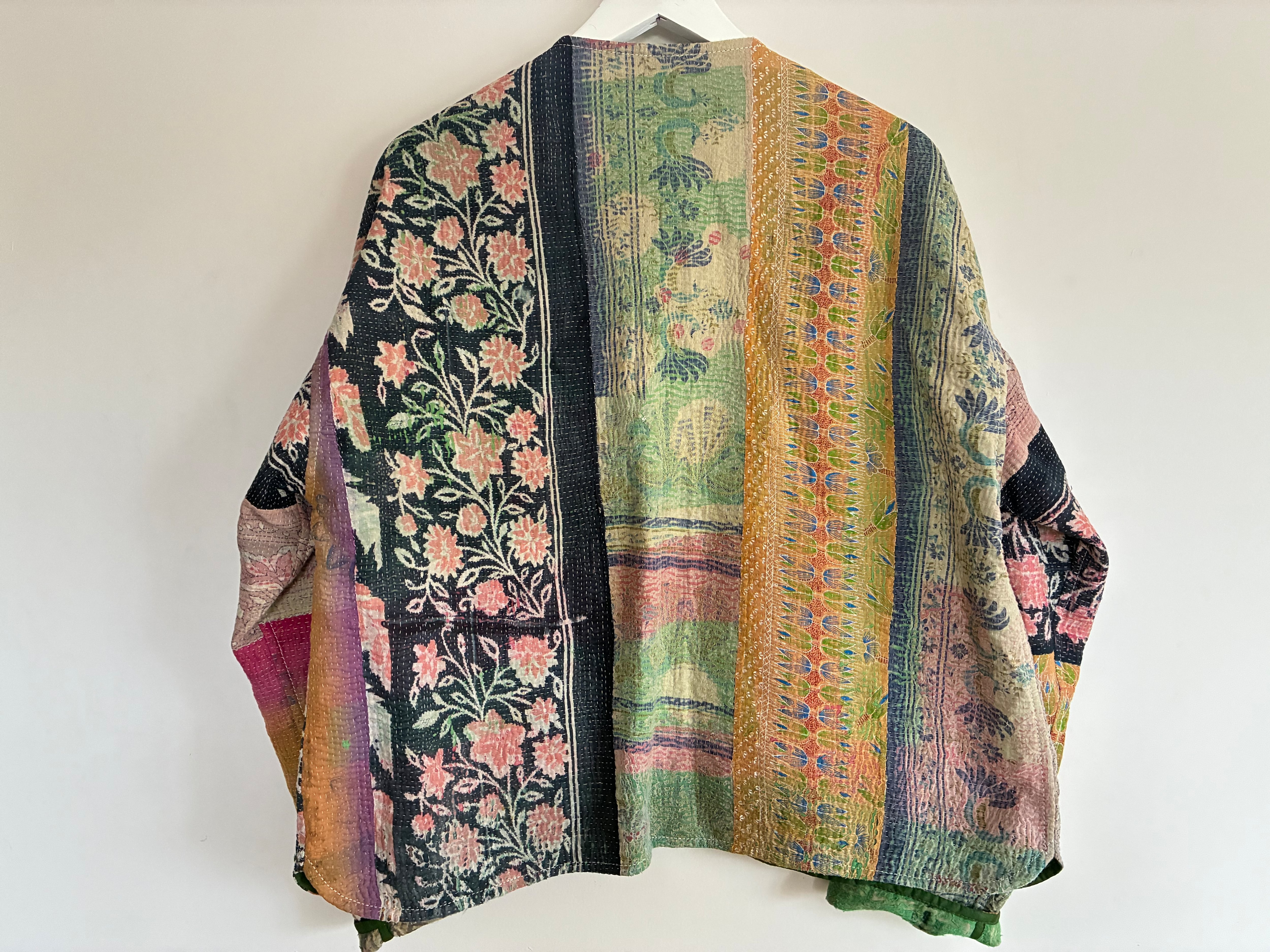 ラリーキルトジャケット✴︎カラフルパッチワーク×グリーングレージュ