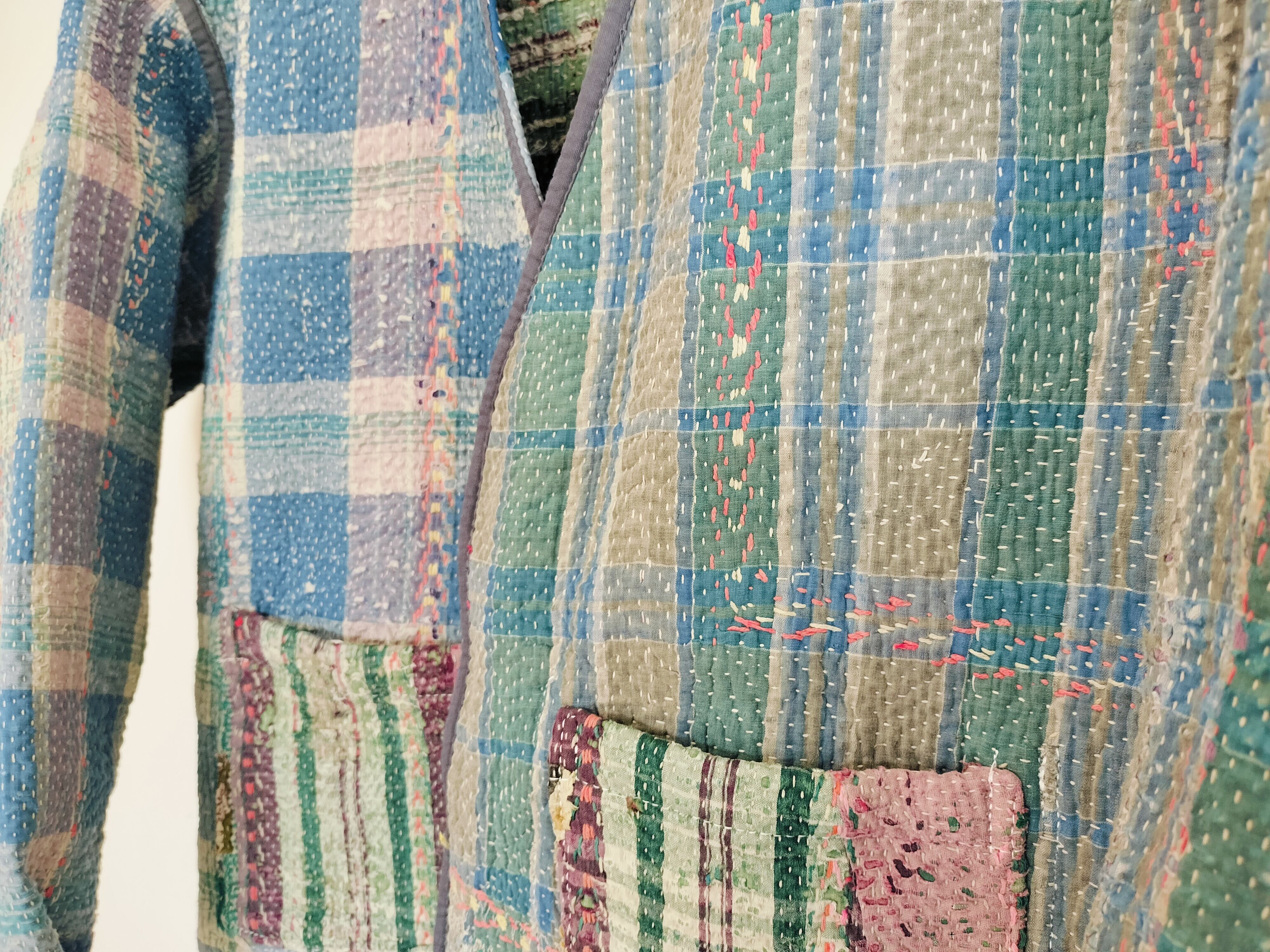 ラリーキルトジャケット✾カラフルパッチワーク×ブルーチェック