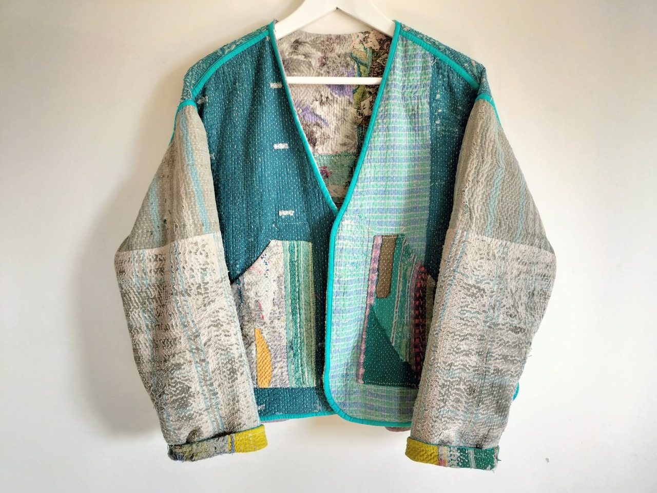 ラリーキルトジャケット✾イエロースリーブ×ターコイズ